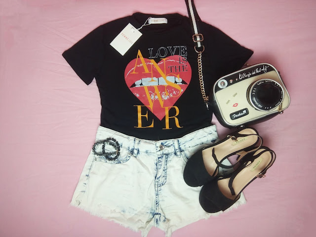 Una vez que habéis visto la ropita, ¡Vamos con los looks! La primera prenda que os quiero enseñar de Femme Luxe es esta camiseta negra con corazón (Trousers). Es la talla S/M, coritita y elástica. Me queda perfecta de talla, pues su talla se corresponde perfectamente con la talla de España pero al ser cortita y no querer enseñar la barriga (Una ya no se ve enseñando la barriga como antes...), pues solo la combinaría con un pantalón de talle alto. Así que la he combinado con unos short de talle alto, unos taconazos negros y un bolso con forma de cámara vintage, ¿Qué os parece la combinación? A mi me encanta! <3